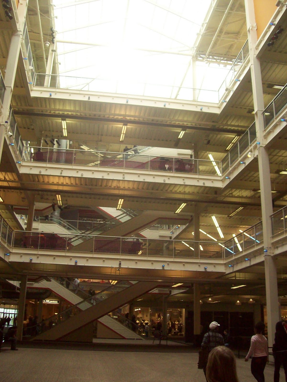 The mall was 4 stories. Escalators at each end as well as 2 sets of clear elevators.